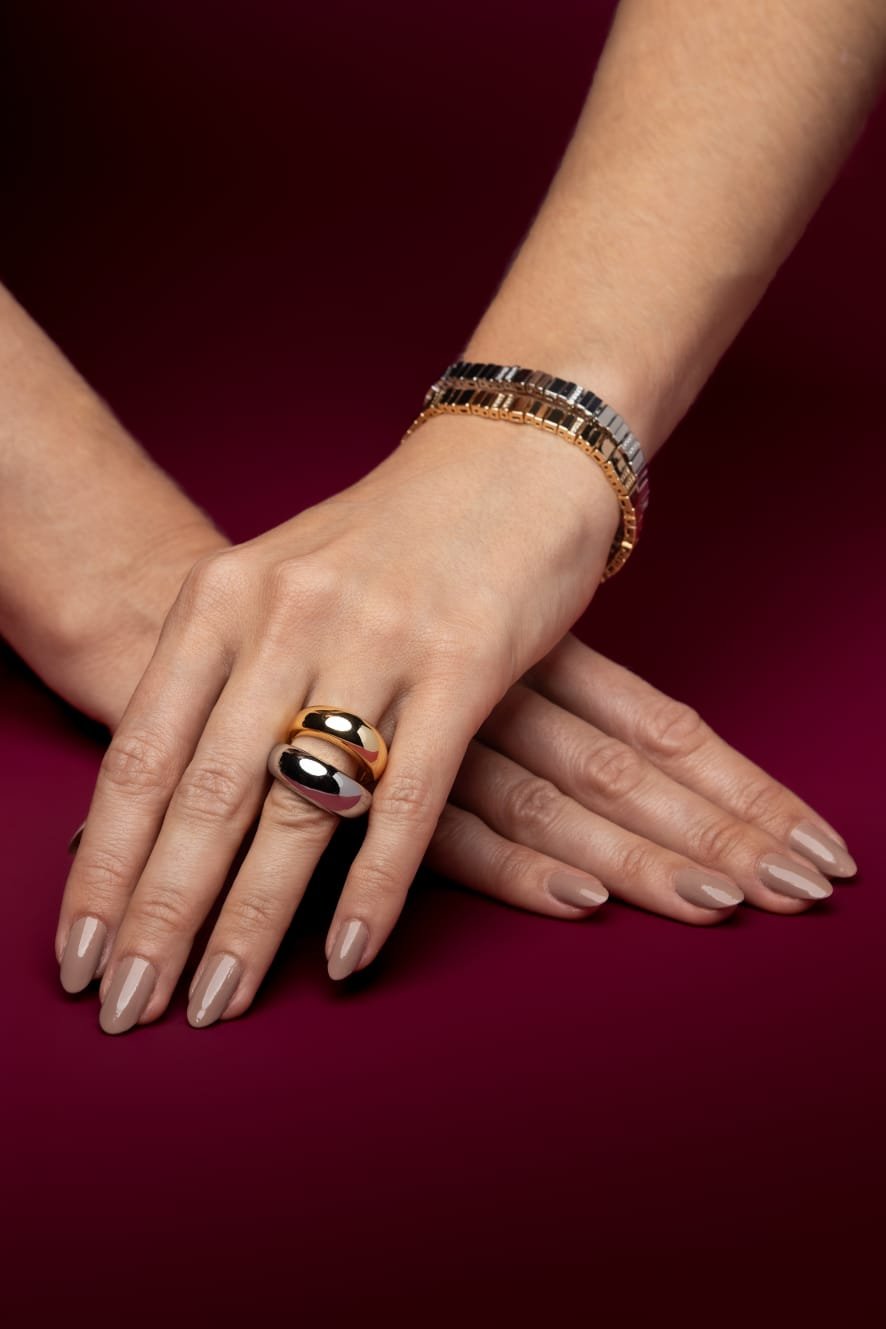 Anel duplo bicolor.