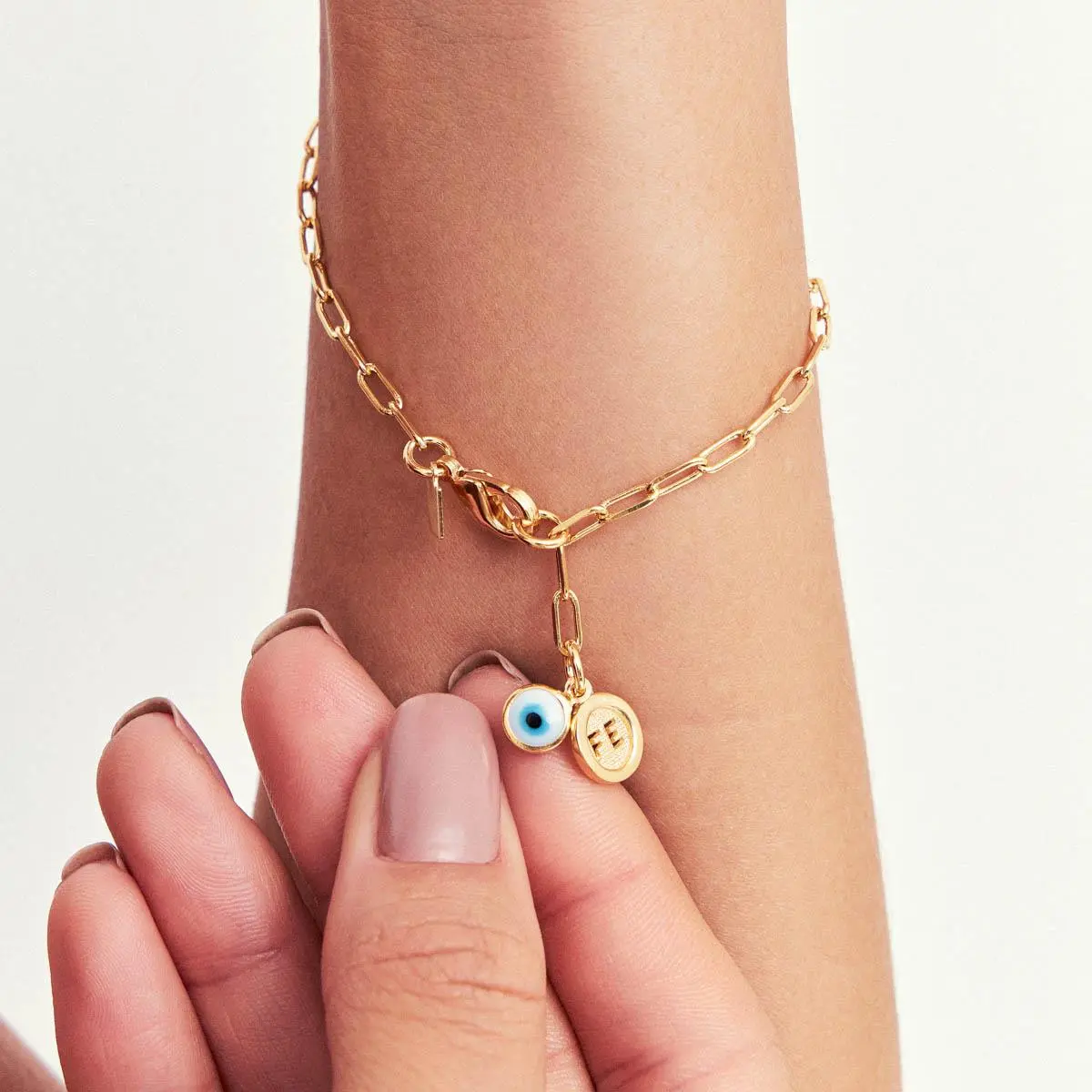 Pulseira pingentes Fé e olho.